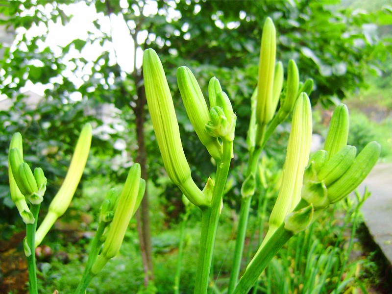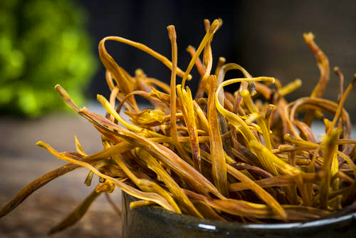 黄花菜的花是我们熟知的素食佳肴,也是我国著名的传统干菜。新鲜花不宜多吃, 若食用时用沸水焯的时间要长一些,再用凉水浸泡,使其所含的秋水仙碱充分溶于水,以免中毒。黄花菜生长分布于我国的东北、华北和西北东部等省区。 其对土壤适应性强,在平原疏松的土壤中生长旺盛,不耐水涝,而在山坡、 草地和林间也较适宜生长。