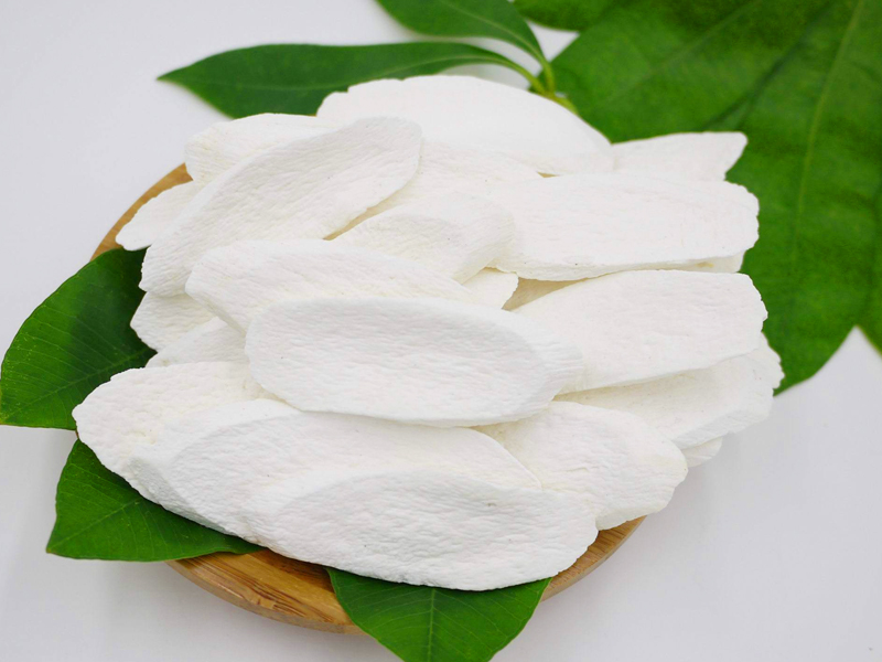 第四阶段、随着温度的升高,水汽的排出,淮山片的湿度越来越低,当温度参数最后设置在60-70℃时,排湿强度增大,直至将淮山片干燥至含水率约10%,时间需6小时左右,这时可以淮山片已烘干完成,用手掰之脆断,外表和内里干燥均匀。