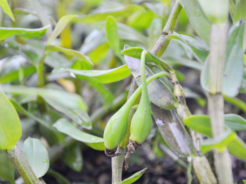 1、石斛全年均可采收,但11-4月为石斛最佳采收期,考虑到维生素及药性成分,采收时以生长约2-3年的石斛茎干为宜,随后修剪去除茎干上多余的根须、叶梢和花序残留部分,留下的石斛鲜条洗净后摊放在通风阴凉处。