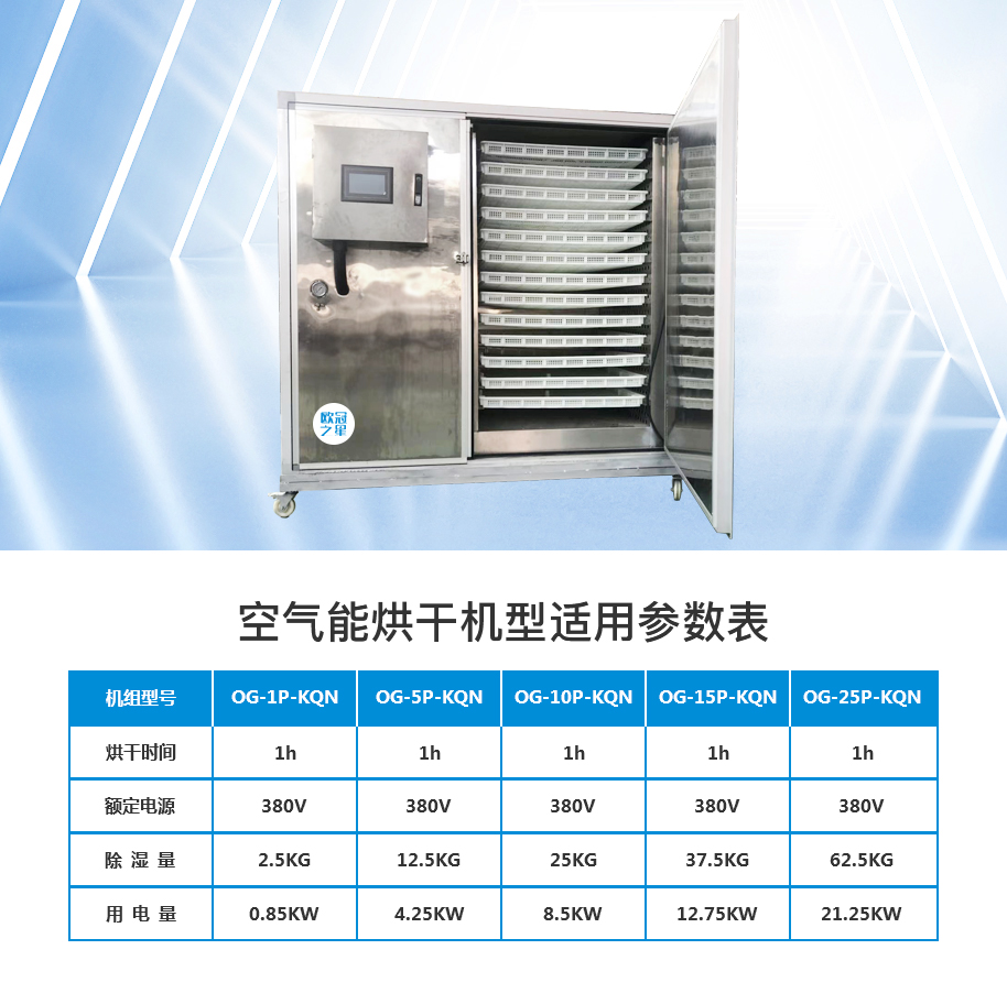 欧冠之星空气能热泵烘干属于高温烘干热泵机组,它的工作原理是:利用冷媒经过压缩机压缩,成为高温高压的气体,进入冷凝器放热,冷凝放出的热量由循环风机送入烤房,将烤房空气加热(最高出风温度可达80℃),随着空气温度升高,烘干物中的水分会逐渐蒸发,再由新风排湿系统进行排湿,从而达到烘干的效果。
