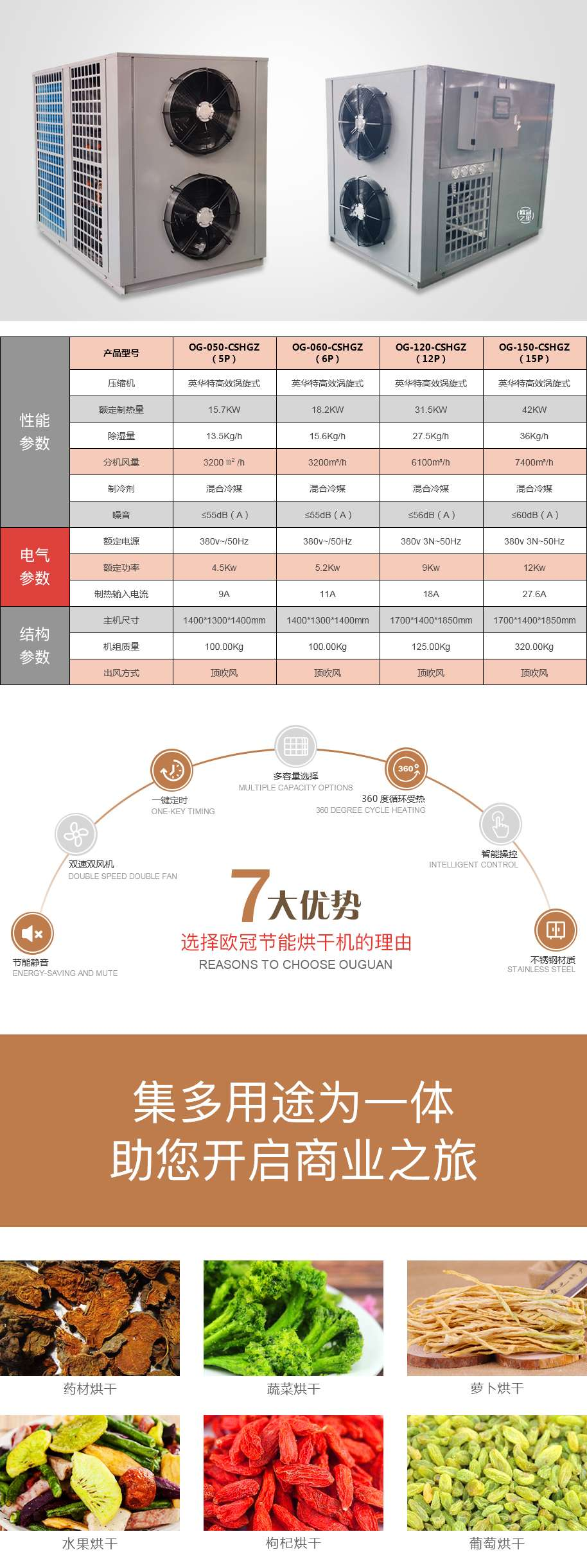 整体闭式烘干机加大换热面积,特有高温制冷剂,最高80℃出风温度。烘干、冷干、除湿、排湿、新风定时定温,功能齐全。密闭环境,热量不损失,保持物质原有的特性。安全、节能、全自动控,有效满足各种食品、药品、木材、烟花、印刷等行业的烘干。 适用范围: 食品、药品、木材、烟花爆竹、彩印等的烘干。